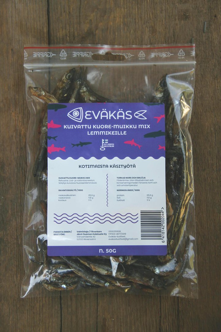 Evakäs Snack für Hunde und Katzen, getrocknete Lauben- und Fingerlingmischung 50g