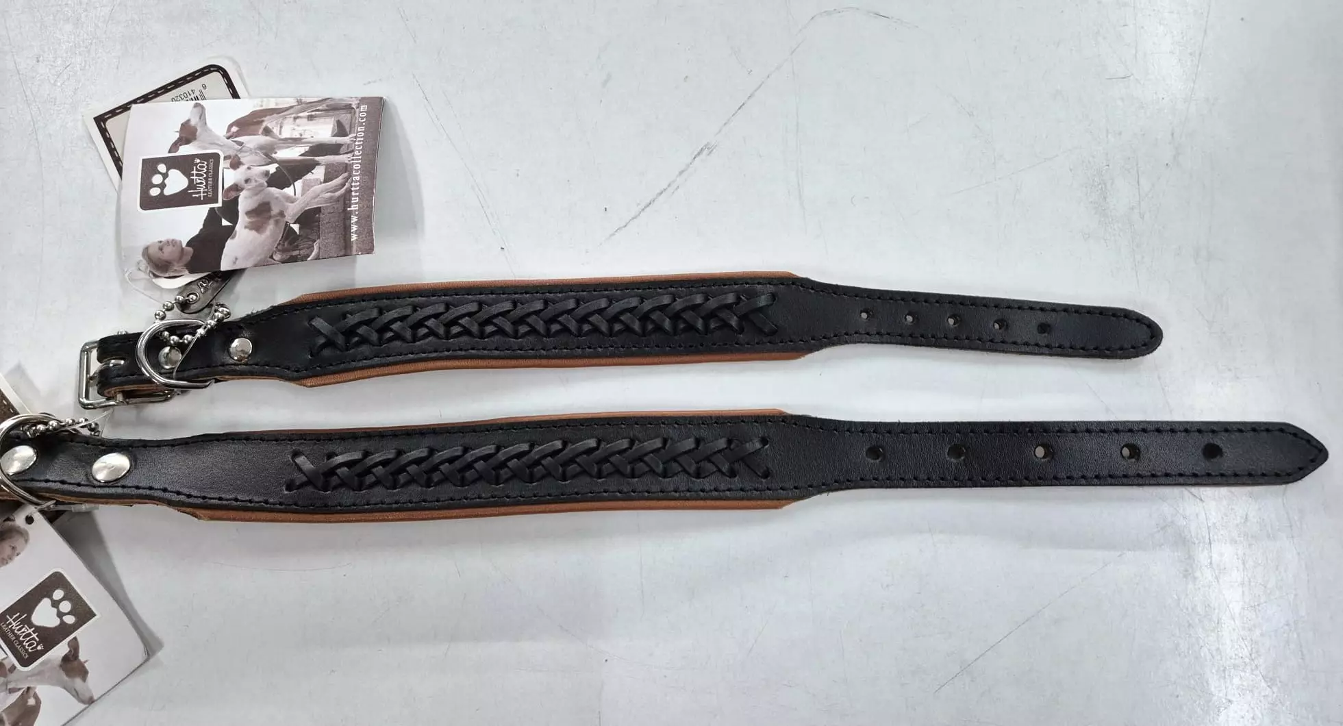 Eleganter schwarz-brauner Leder-Leinenhalsband. Die Länge des Halsbandes bezieht sich auf die Gesamtlänge des Halsbandes. Genauere Maße je nach Größe: 30 cm: Breite 15/30 mm, Einstellbereich etwa... Mehr lesen