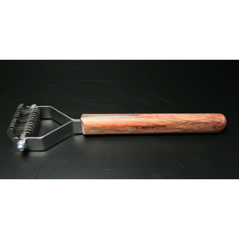 Ausgezeichnetes Werkzeug zum Entfernen von losem Haar, Unterwolle und Verfilzungen. Robuster, stylischer und angenehm zu haltender Holzgriff. Die Klingen sind aus hochwertigem, rostfreiem Stahl. Dieses Modell hat 8 Klingen, die sich besonders gut für grobes, starreres Fell eignen (z.B. Schnauzer und rauhaarige Rassen).