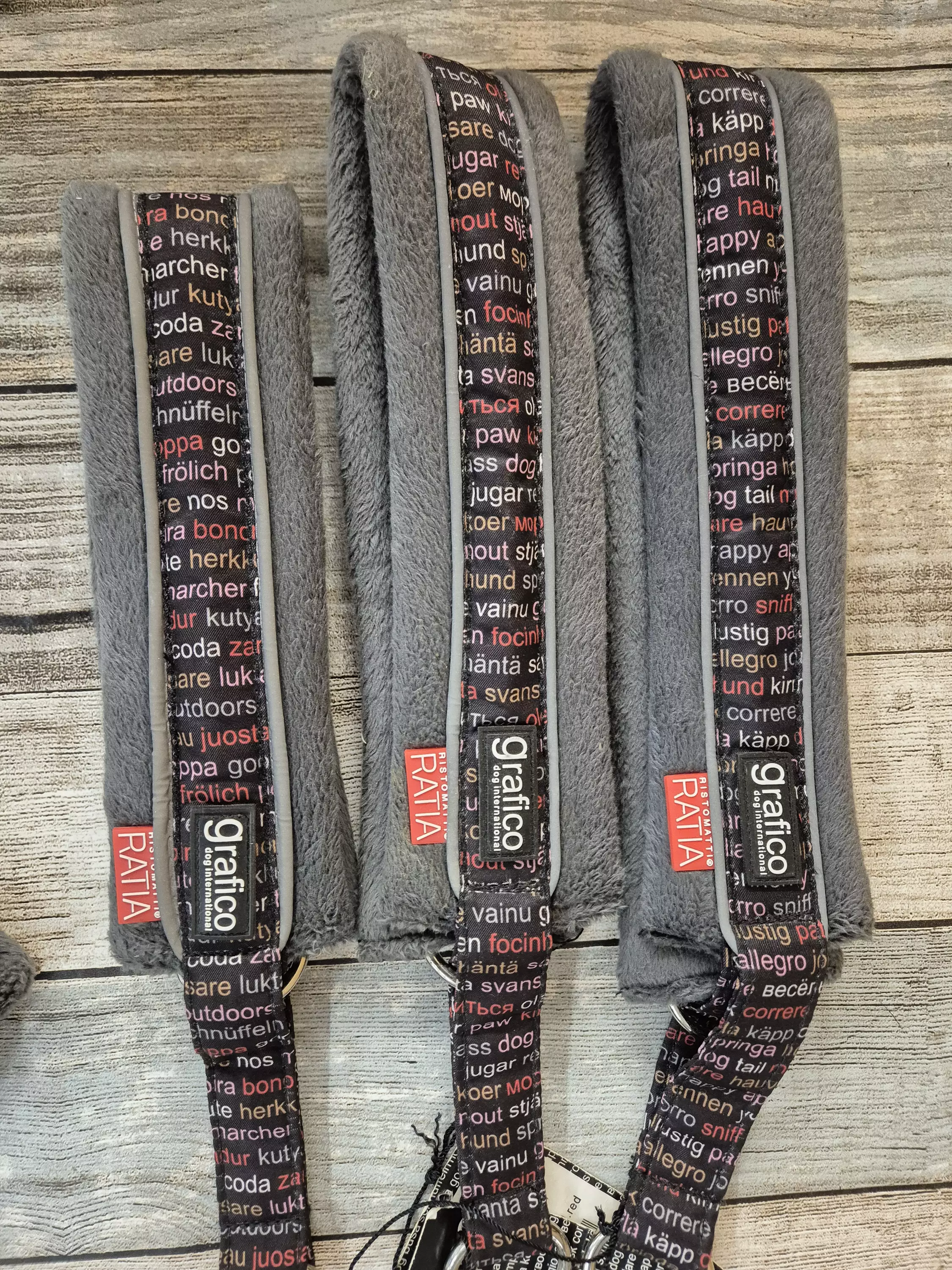 Mit Reflektor ausgestattetes Ratia-Halsband aus weichem Material. Die Polsterung besteht aus grauem Fleece, das den Hals des Hundes schont. Die Polsterung schützt den Hals des Hundes und schädigt das Fell nicht. Es ist sehr einfach, das Halsband anzulegen und vom Hals des Hundes zu entfernen. Das Halsband ist teils verstellbar und die Größe wird entsprechend dem Kopfumfang des Hundes (an der breitesten Stelle des Schädels) ausgewählt. Waschbar: bei 30 Grad Celsius Größen: 340 - 50 cmCollie, Irish Setter 445 - 55 cmDobermann, Golden Retriever 550 - 65 cm