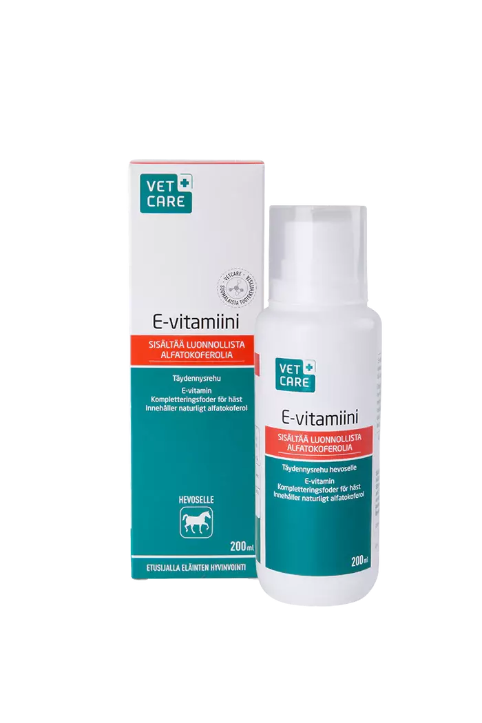 Flüssiges, natürliches Vitamin E für Pferde und Hunde (D-alpha-Tocopherol) Flüssiges Antioxidanspräparat mit natürlichem Vitamin E (D-alpha-Tocopherol) zur Förderung des Wohlbefindens von Pferden und Hunden. Besonders geeignet für die Fütterung während der Stallzeit, für Tiere mit starker Beanspruchung sowie zur Unterstützung während der Fortpflanzungs- und Wachstumsphase. Warum benötigt man Vitamin E? Pferde erhalten natürliches Vitamin E durch frisches Weidegras, allerdings nimmt der Vitamin E-Gehalt in Heu während der Stallzeit erheblich ab. Deshalb ist ein Ergänzungsfutter ein wichtiger Bestandteil der Ernährung von Pferden, insbesondere bei Renn-, Zucht- und heranwachsenden Pferden. Hunde produzieren Vitamin E nicht selbst und erhalten manchmal nicht genügend davon über die Nahrung. Insbesondere Hunde, die stark beansprucht werden oder zur Zucht eingesetzt werden, profitieren von einem Vitamin E-Präparat, das metabolische, hormonelle und immunologische Prozesse unterstützt. Vitamin E schützt Fette vor Oxidation (Ranzigkeit), was in fettreichen Diäten wichtig ist. Verwendungshinweise Pferd: Während der Stallzeit: 3 Pumpen pro Tag (720 IE) Pferde, die zur Ölfütterung während der Weidezeit: 1–3 dl Öl: 1 Pumpe pro Tag (240 IE) 3 dl Öl: 2 Pumpen pro Tag (480 IE) Zuchtstuten: Vor dem letzten Trächtigkeitsmonat: 3 Pumpen pro Tag (720 IE) Letzter Trächtigkeitsmonat: 5 Pumpen pro Tag (1200 IE) Junge Pferde (unter 1 Jahr): 4 Pumpen pro Tag (960 IE) Hund: Unter 1 Jahr oder erwachsener Hund mit leichter Bewegung: 1 Pumpe pro Tag Erwachsener Hund mit starker Beanspruchung: 2 Pumpen pro Tag Trächtige, säugende oder zur Zucht eingesetzte Hündin: 3 Pumpen pro Tag Zusammensetzung Weizenkeimöl D-alpha-Tocopherol (natürliches Vitamin E) Ernährungszusätze: Vitamin E (D-alpha-Tocopherol): 134.200 mg/l = 200 IE/ml Lagerung und Haltbarkeit Lagerung unter +25 °C (Raumtemperatur) Mindestens haltbar bis: 24 Monate nach Herstellung Die geöffnete Flasche sollte innerhalb von 3 Monaten verbraucht werden