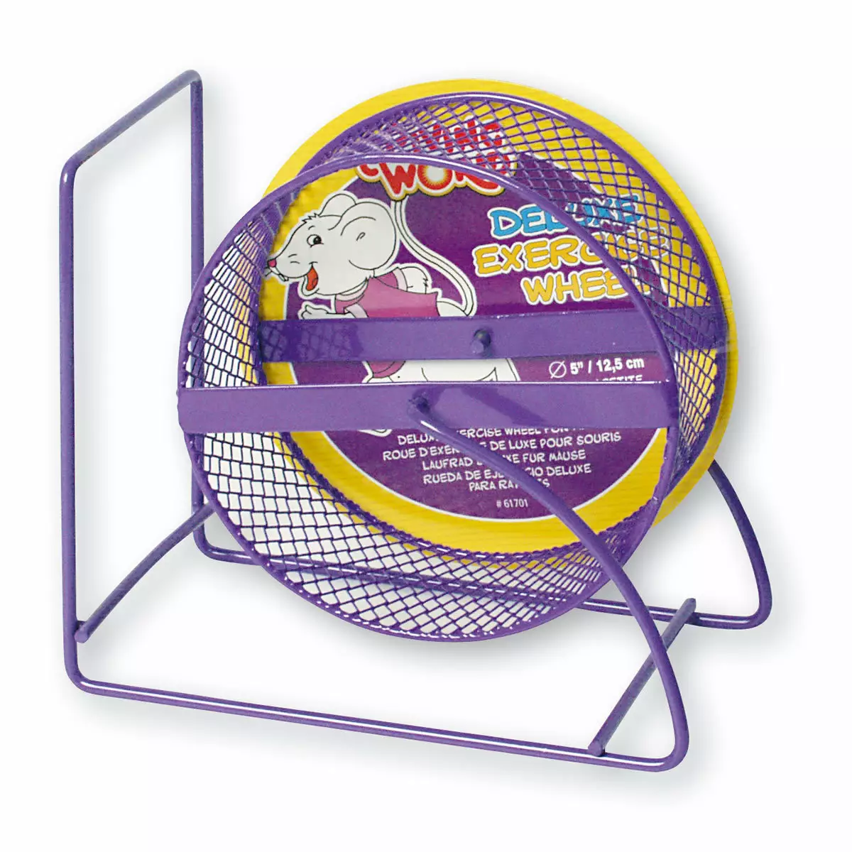 Metallisches Laufrad mit feinem Metallnetz. Erhältlich in drei verschiedenen Größen, der Durchmesser des Laufrades ist: S 12 cm (lila) M 17 cm (grün) L 22 cm (blau) Wählen Sie immer ein ausreichend großes Laufrad für Ihr Haustier! Das Tier sollte in der Lage sein, im Rad so gerade wie möglich zu laufen, damit der Rücken nicht zu stark gekrümmt wird.