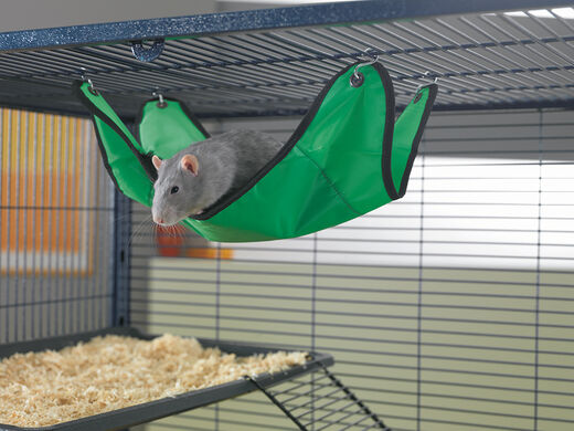 Bequeme Hängematte für Ratten und Frettchen. 40 x 22,5 cm Die Innenfläche besteht aus einem angenehm weichen Kunstfell. Entfernen Sie die Metallelemente vor dem Waschen. Waschen bei 40 Grad.