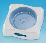 Keramische, schöne Schüssel für Katzen. Die Maße der Schüssel sind etwa 13 x 13 x 2,5 cm. Farbe blau-weiß.