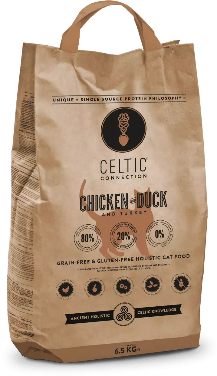 80% animal-based ingredients and 20% fruits, vegetables, and herbs. The ONLY grain-free cat food with therapeutic levels of glucosamine, chondroitin, and MSM, plus a blend of fruits, vegetables, and plants to support your pet's natural health. This cat food is also suitable for many allergic/sensitive cats, as it contains no salmon oil or other fish products. MADE FROM FRESH AND NATURAL INGREDIENTS. THE SHAPE AND COLOR OF THE KIBBLE MAY VARY.. Ingredients: Chicken, duck, and turkey (80%, including: 28% dried chicken, 22% fresh chicken, 12% dried turkey, 8% chicken fat, 5% fresh duck, 5% fresh turkey, 1% chicken broth), sweet potatoes (14%), dried chicory (natural source of FOS and inulin), algae oil (natural source of EPA and DHA), vitamins and minerals, pumpkin (5,000 mg/kg), Bio-MOS (natural source of beta-glucans), glucosamine (1,900 mg/kg), chondroitin sulfate (1,500 mg/kg), methylsulfonylmethane (MSM) (1,500 mg/kg), dried cranberries (500 mg/kg), apples, dandelion, rosemary extract, yucca schidigera (500 mg/kg), meadowsweet root (450 mg/kg), artichoke leaves (400 mg/kg), turmeric (125 mg/kg), dried yarrow seeds (100 mg/kg), pear, spinach Nutritional supplements per kg: Antioxidants: Natural tocopherol-rich extracts 480 mg; Vitamins: Vitamin A 20,000 IU, Vitamin D3 1,300 IU, Vitamin E 250 IU, Folic acid 1.7 mg; Trace elements: Zinc (zinc chelate protein hydrolysate) 87 mg, Iron (iron chelate protein hydrolysate) 50 mg, Manganese (manganese chelate protein hydrolysate) 26 mg, Copper (copper chelate protein hydrolysate) 7.5 mg, Iodine (potassium iodide) 0.75 mg, Selenium (selenized yeast Saccharomyces cerevisiae, inactivated) 0.1 mg; Provitamins: Taurine 2,400 mg, L-carnitine 250 mg; Technological additives – intestinal microbiota stabilizers: Enterococcus faecium (4b1707) 10^9 cfu Analysis: Crude protein 40.50% – crude fat 20.50% – crude fiber 0.08% – ash 8.50% – Omega-3 1.20% – Omega-6 3.50% – glucosamine 1,900 mg/kg – chondroitin 1,500 mg/kg – MSM 1,500 mg/kg – metabolizable energy 425 kcal/100 g