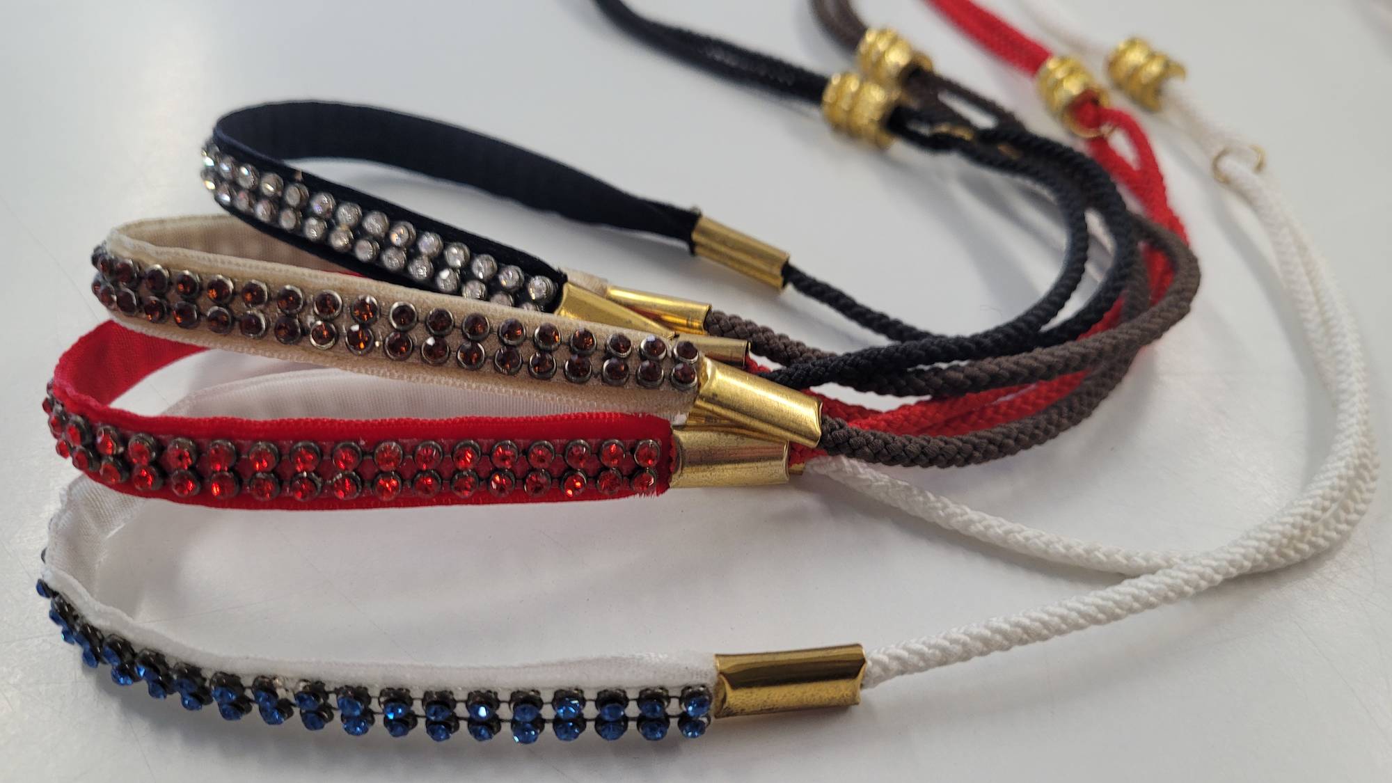 Show lead with a hand loop Length approx. 55 inches The collar section is slightly wider and adorned with bling-bling.