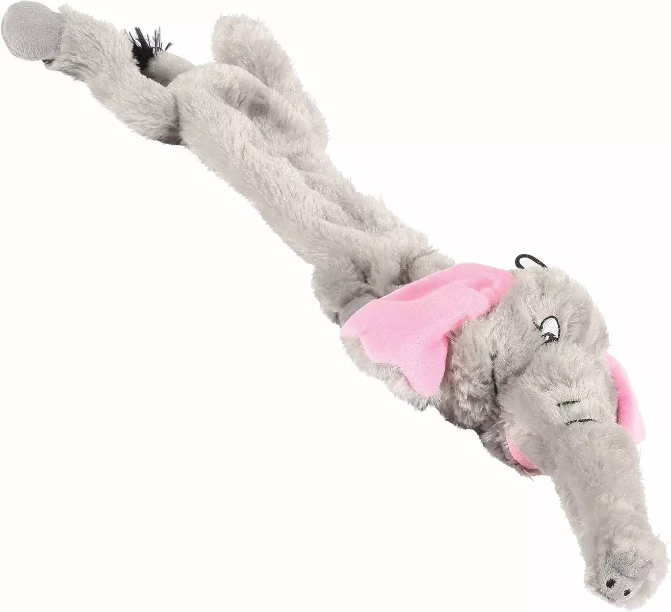 This nearly stuffing-free Wild Elephant Crinkle Toy is a beautifully designed toy featuring a long, stuffing-free body that crinkles and a stuffed head with a squeaker sound.The combination of the crinkly body and squeaky head entertains your dog for hours!The toy is perfect for fetch games as well as gentle tug play.Stuffing-free body with crinkleKeeps your dog entertained for a long timePerfect for dogs that enjoy carrying toys aroundEasy to cleanMachine washable at low temperatures