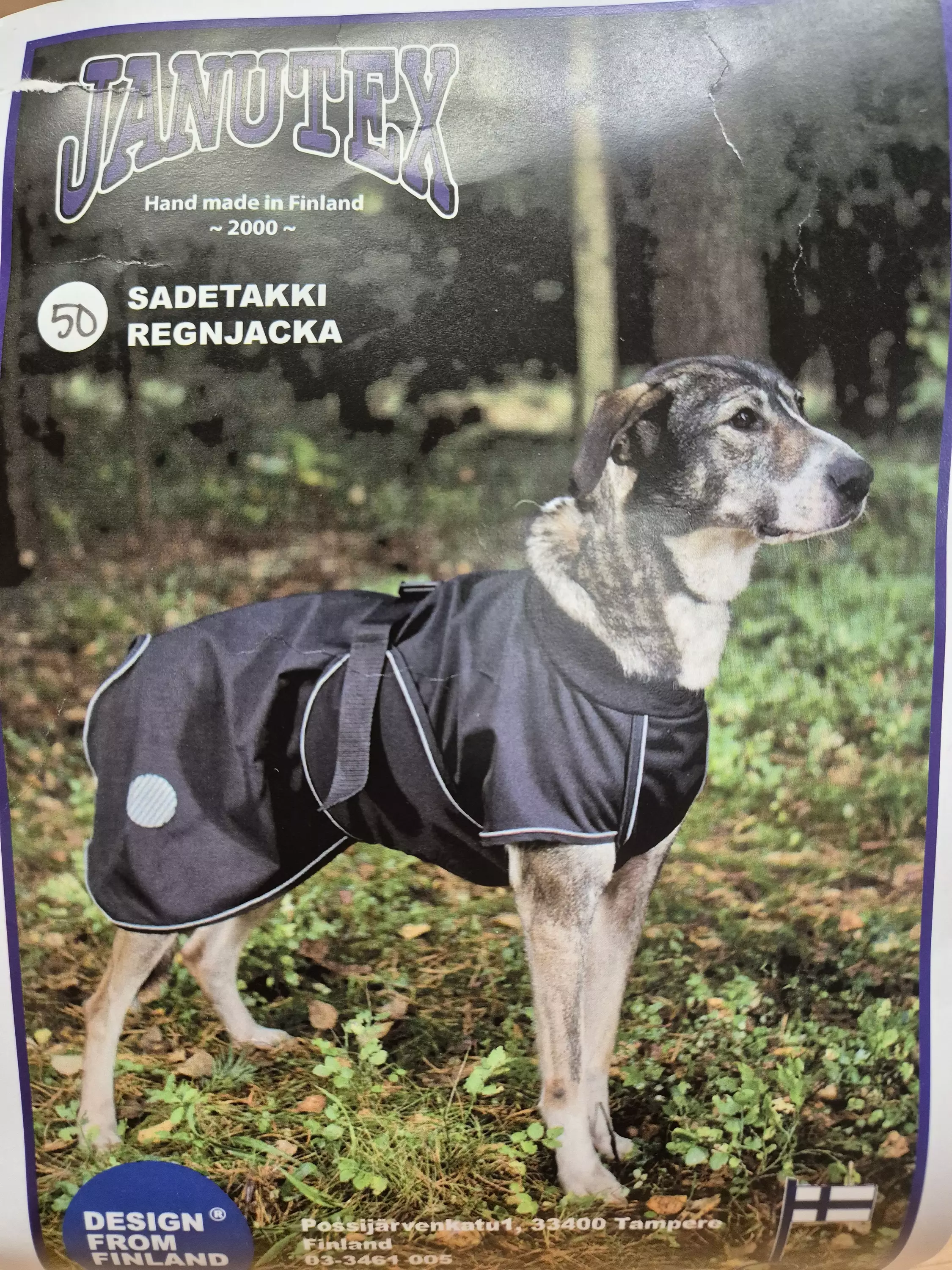 Material made of stylish, high-quality rubber-coated fabric. Appears as a softshell type, a product that looks and feels premium, capable of withstanding rough activities! Features reflective trim along the edges, a quick-release buckle on the back, elastic bands on the hind legs, and tailored cuts over the hindquarters for a snug fit. Color: Black. Size measured in centimeters for back length.
