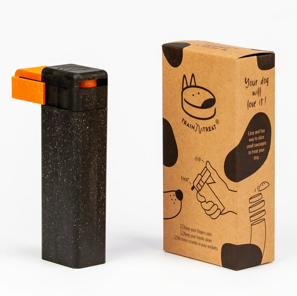 Spend quality time with your pet. Train'N'Treat is designed for daily reward training of your pet. The device keeps your fingers safe and your pockets clean. It is small and lightweight, making it easy to carry anywhere. The device is compatible with firm dog treats (such as Naturis and Meat&Treat) and skinless sausages. You can also reward your pet with other soft treats like cheese, cucumber, banana, or boiled carrots. Our product combines fun, neatness, and safety in offering treats with a subtle click. Train'N'Treat is built to last, with a body made of biocomposite material and stainless steel parts.