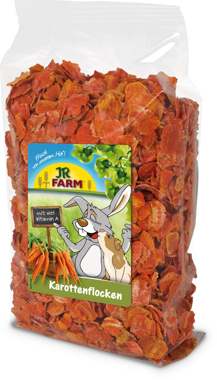 JR Farm carrot flakes are excellent snacks for rabbits and rodents. The flakes are dried and steam-treated, ensuring they are rich in natural vitamins.