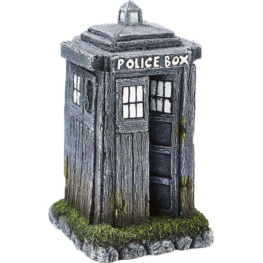 Mått: 8,5 x 8,5 x 16 cm Vem kan inte tänka på Doctor Who och Tardis när man ser detta? Tillverkat av polyresin (syntetiskt harts) Helt giftfri, neutralt biologiskt balanserad passar för söt- eller saltvatten Jämn färg, små färgförändringar kan förekomma efter långvarig användning Skölj innan användning med ljummet vatten