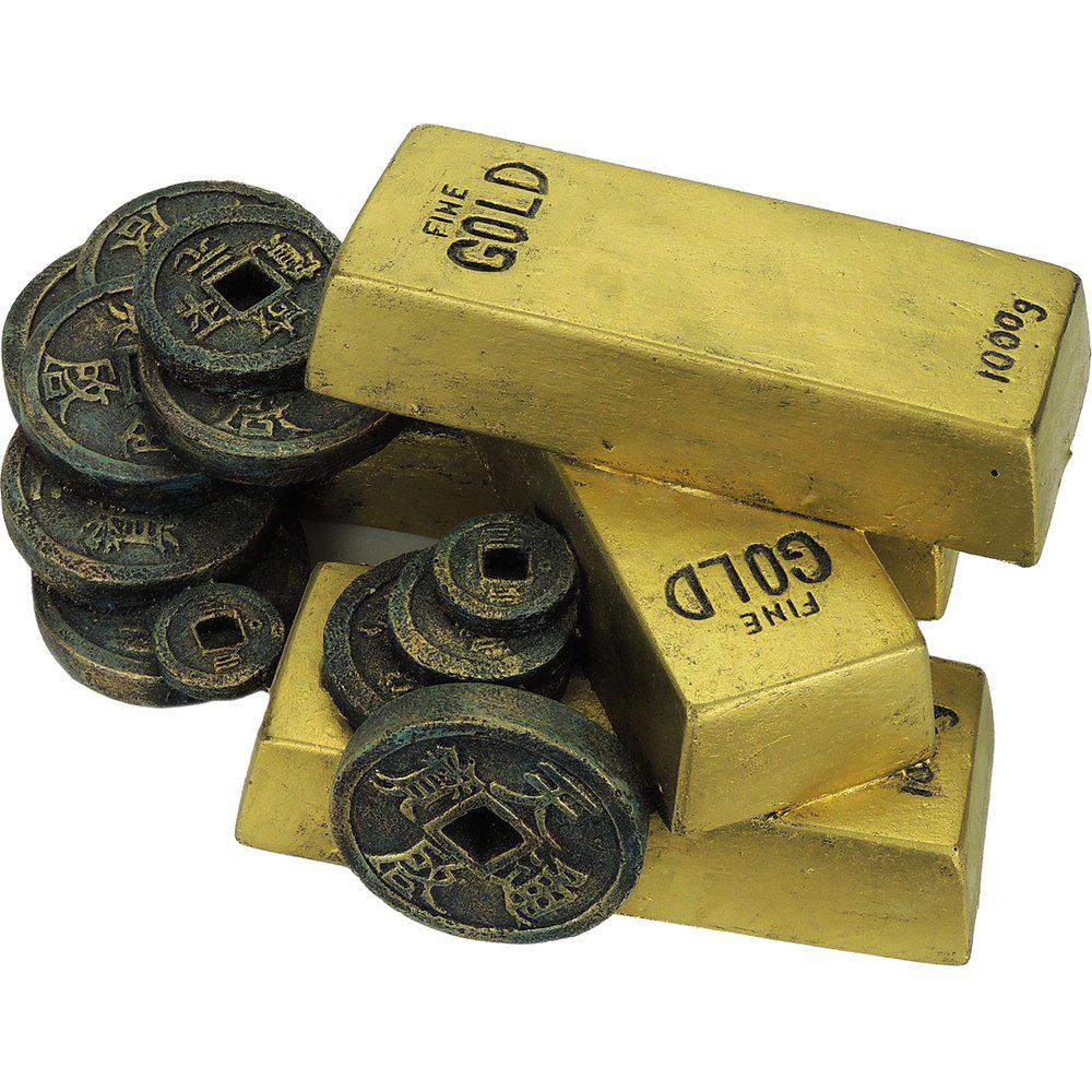 Guldbar med Mynt Akvariedekoration