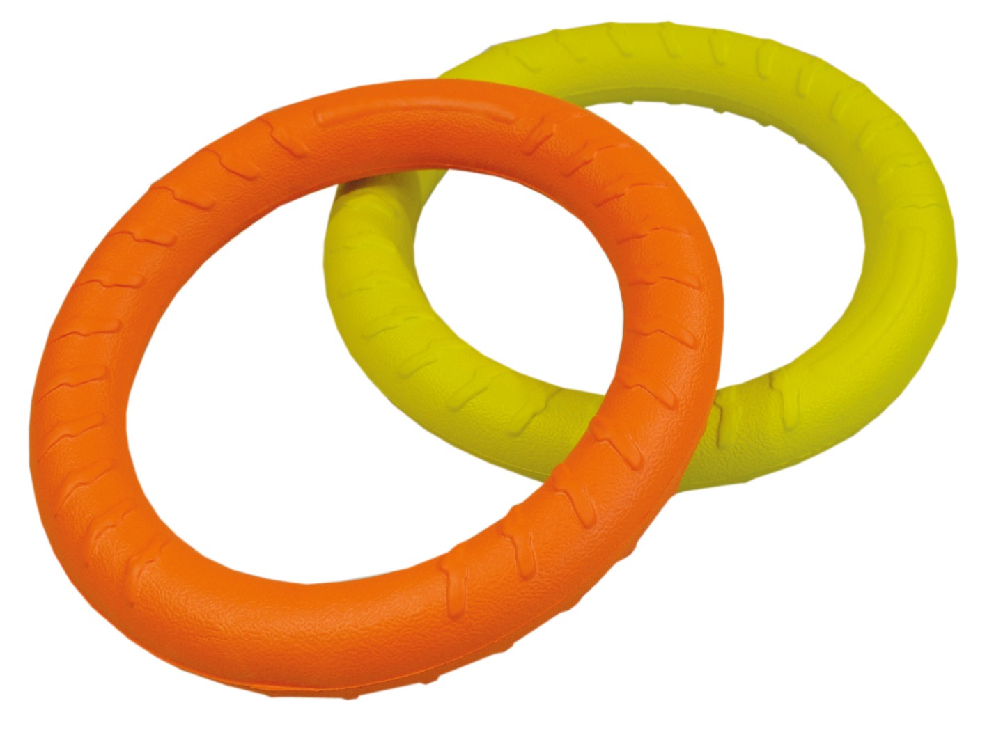 Skrämselen är tillverkad av lätt och flexibelt skummaterial. Skrämselen flyter och är därmed ett utmärkt leksak för simning! På grund av sin ringform är det lätt att kasta leksaken. S = Den lilla skumringen har en diameter på cirka 18 cm och en tjocklek på 2,5 cm. Ringens vikt är cirka 60 g.L = Den stora skumringen har en diameter på cirka 30 cm och en tjocklek på 4 cm. Ringens vikt är cirka 215 g. Leksakens material är behagligt för hundens mun. Den är lätt att rengöra och väderbeständig. Ringen syns väl både i snö, gräs och vatten!Färgen på den skickade produkten varierar beroende på lagerstatus.Leksakernas nyanser kan variera mycket, så den kan avvika från bilden. Kom ihåg att alltid övervaka din hunds användning av leksaken!