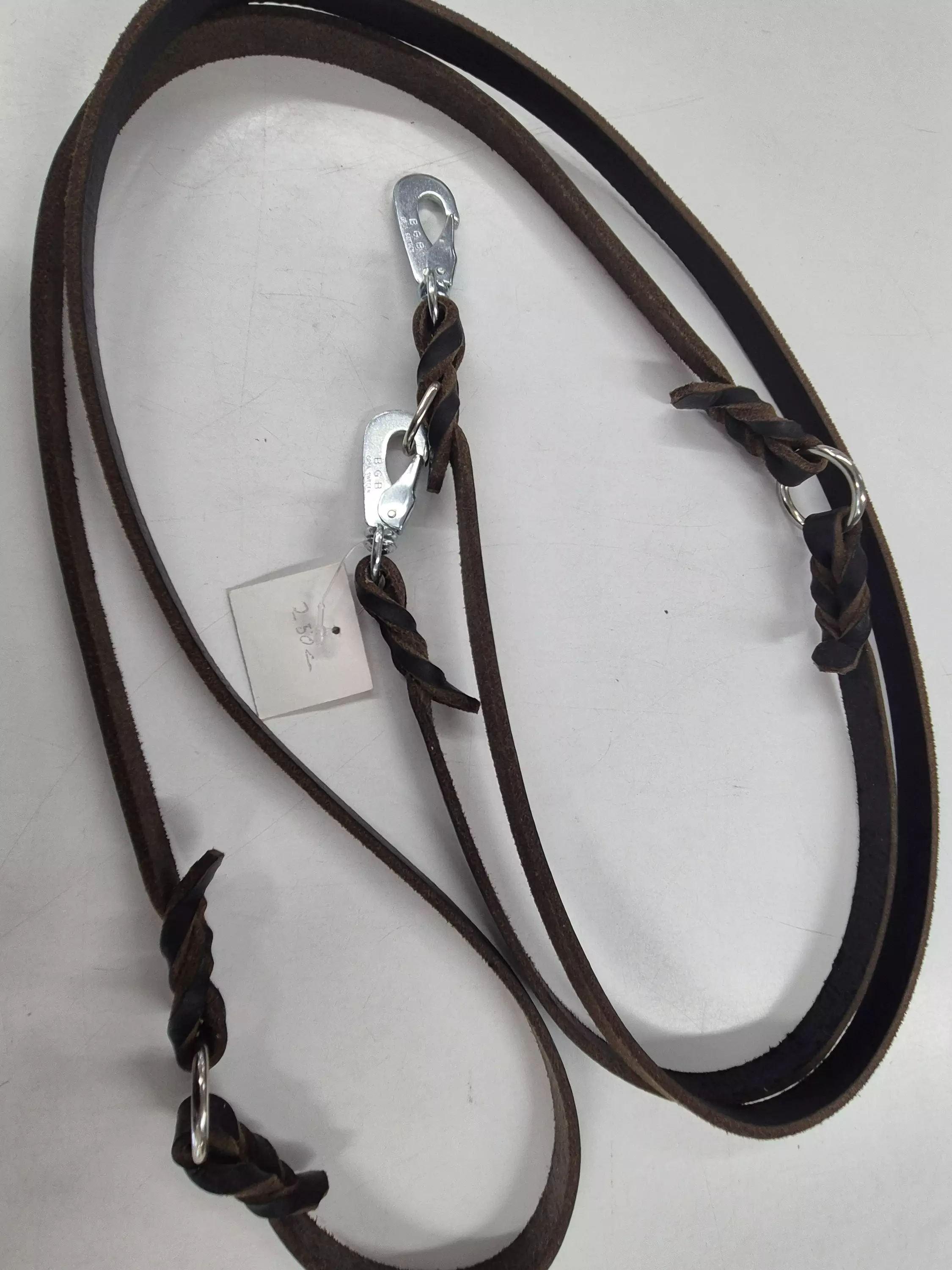 Träningskoppel med BGB-lås på båda sidor. Den totala längden på kopplet är 250 cm, bredden är cirka 12 mm. Färg brun.