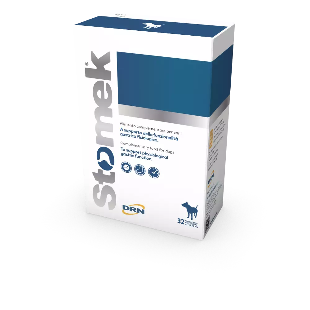 Till skillnad från bilden innehåller paketet 16 tabletter. Produkten stöder hundens magfysiologi. Stomek kosttillskottets kombination av ingefära, kamomill, fikonkaktus och lakrits hjälper till att lindra och minska överproduktionen av magsyra. Produkten är också lämplig för dräktiga och diande tikar. Kosttillskott. Produktens sammansättning:Sammansättning: maltodextriner, hydrolyserat animaliskt protein (gris), växtpolyfenoler från hydrolyserad lignocellulosa, vegetabiliska produkter (Opuntia Ficus Indica-pulver 40 000 mg/kg), inaktiverade bakterier och deras delar (tyndalliserad L. rhamnosus SGL06, tyndalliserad L. reuteri SGL01). Näringsinnehåll: råprotein 7,80 %, råfett 6,10 %, aska 9,30 %, råfibrer 26,00 %. Tillsatsämnen/kg: 2b Matricaria recutita (kamomill) 83 250 mg, 2b Glycyrrhiza glabra -pulver (lakrits) 53 300 mg, 2b 489-t Ingefäraextrakt 63 270 mg, 2b 09211 Glyceroltributyrat (mikrokapsulerat) 66 700 mg. Sammansättningen kan ändras. Kontrollera den slutliga ingredienslistan på förpackningen.