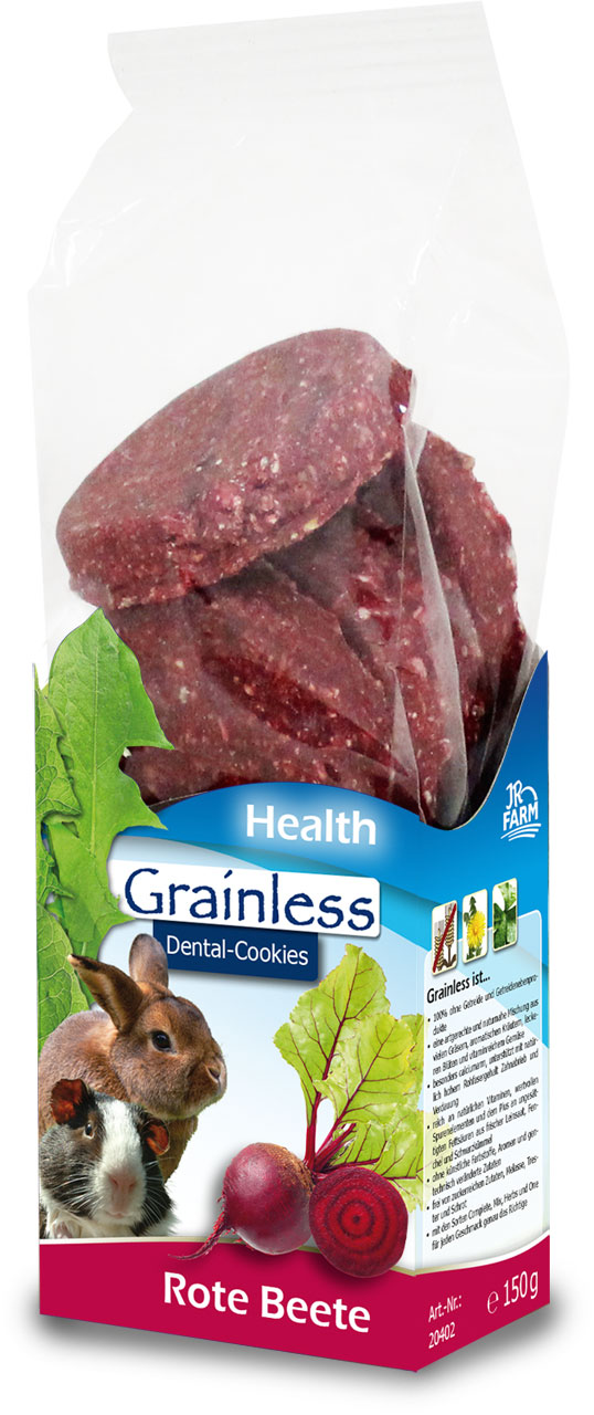 Tack vare sin särskilt hårda struktur bidrar Grainless Health Dental Cookies till slitaget av tänderna och främjar därmed en balanserad kost och djurets hälsa. Kornfritt tillskottsfoder för kaniner och smådjur.Ingredienser: Ärtor, rödbeta 10%, ärtstärkelseSammansättning: Protein 17,5 %, fett 4,7 %, råfiber 3,5 %, råaska 3,0 %, kalcium 594 mg/kg, fosfor 3110 mg/kg, natrium 453 mg/kg