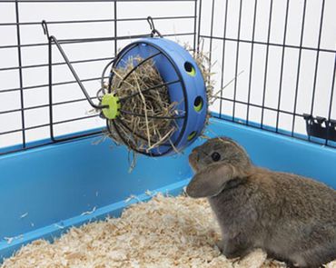 Bunny Toy Hö- och Snacksdispenser, storlek 19,4 × 18 × 12 cm, diameter 16 cm. Rolig hödispenser för smådjur. Bunny Toy har foder-, sallads- och godistillskott i ett. Den kan placeras på botten... Läs mer