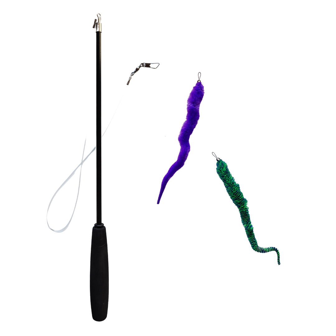 Yugie Toys Kattfiskelek med två Maskar inkluderar ett teleskophandtag med en spännande kroklina och två utbytbara huvuden. Denna kattleksak är ett mer miljövänligt och hållbart alternativ till... Läs mer